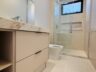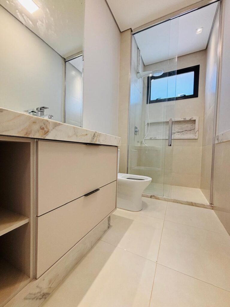 Área de serviço com planejados, banheiro e dispensa com planejados
