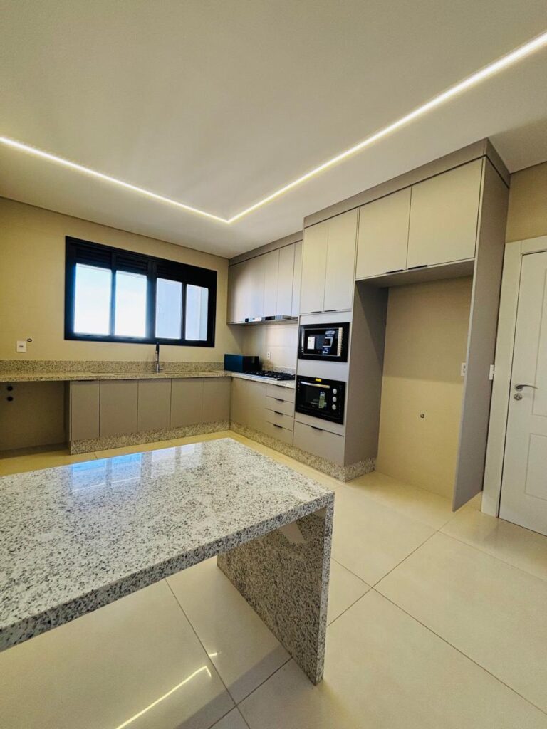 Cozinha com planejados, forno elétrico, cooktop e microondas