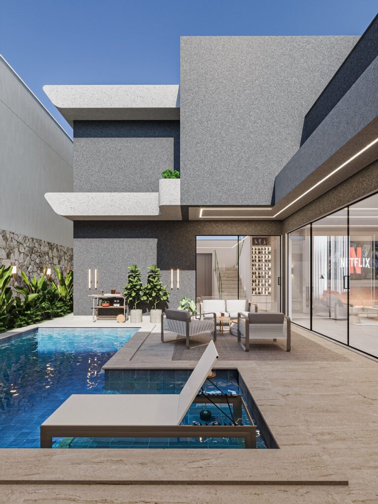 – 354m² Construído + 21m2 piscina (375m² “total construído);
