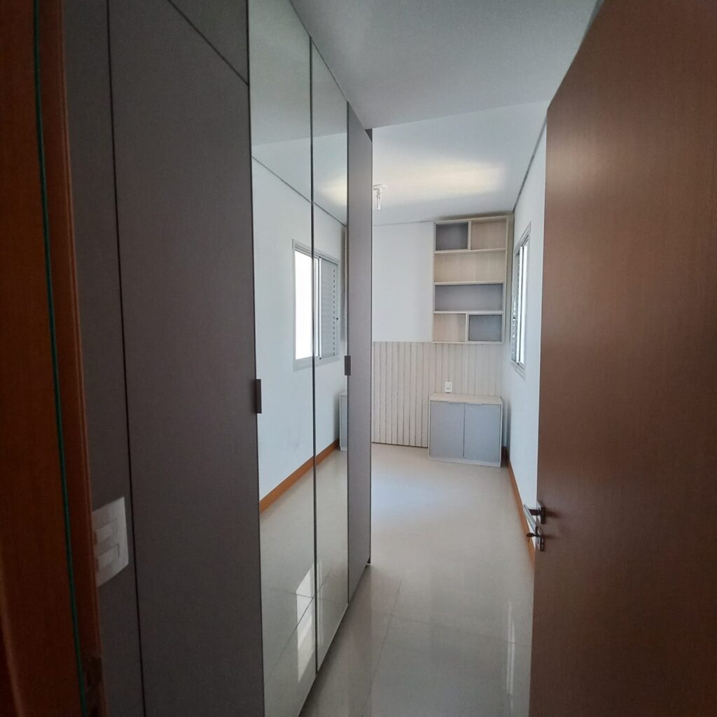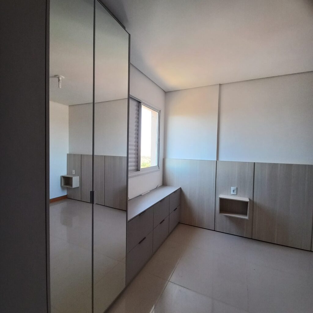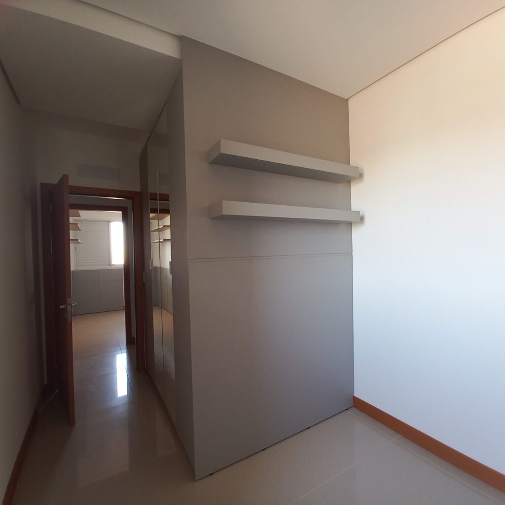 O apartamento fica localizado no 14º pavimento, com vista para o Rio Vermelho área verde de Rondonópolis, foi mobiliado pela Casa Bella e possui planejados em todos os ambientes, inclusive banheiros, lavanderia e corredor que da acesso aos quartos.