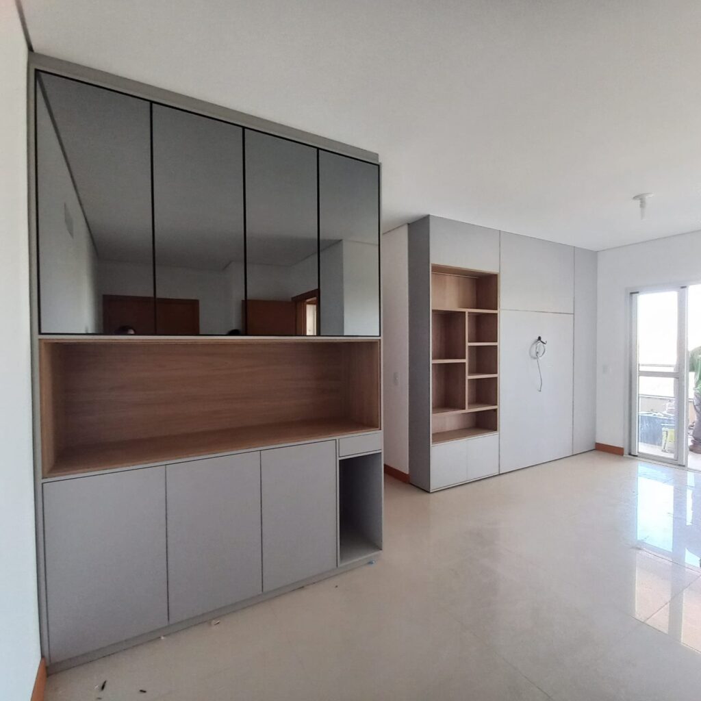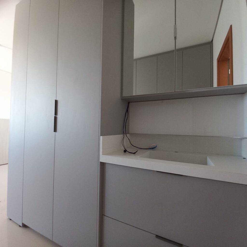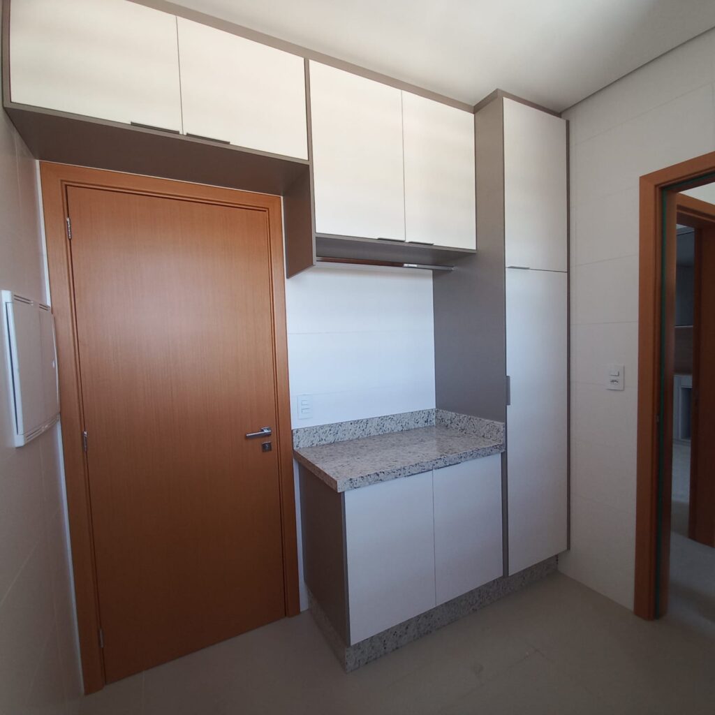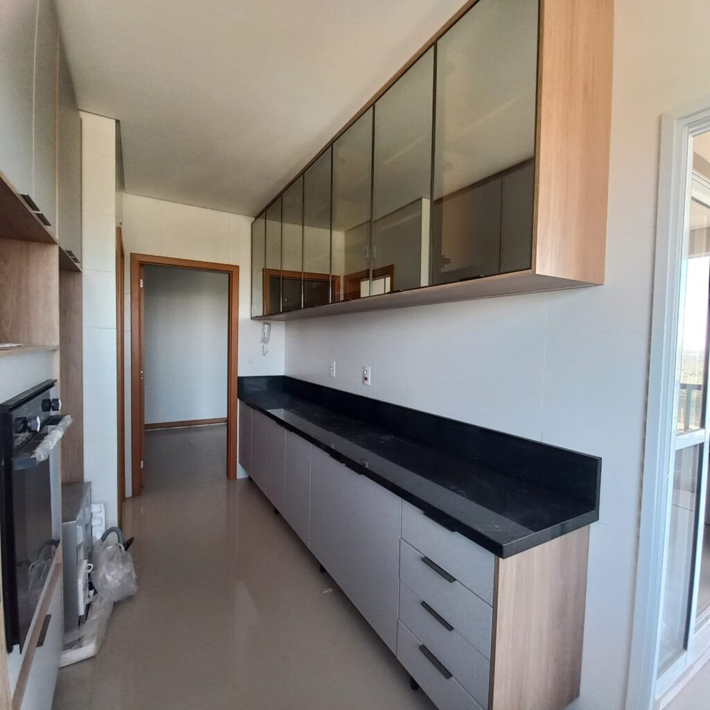 O apartamento fica localizado no 14º pavimento, com vista para o Rio Vermelho área verde de Rondonópolis, foi mobiliado pela Casa Bella e possui planejados em todos os ambientes, inclusive banheiros, lavanderia e corredor que da acesso aos quartos.